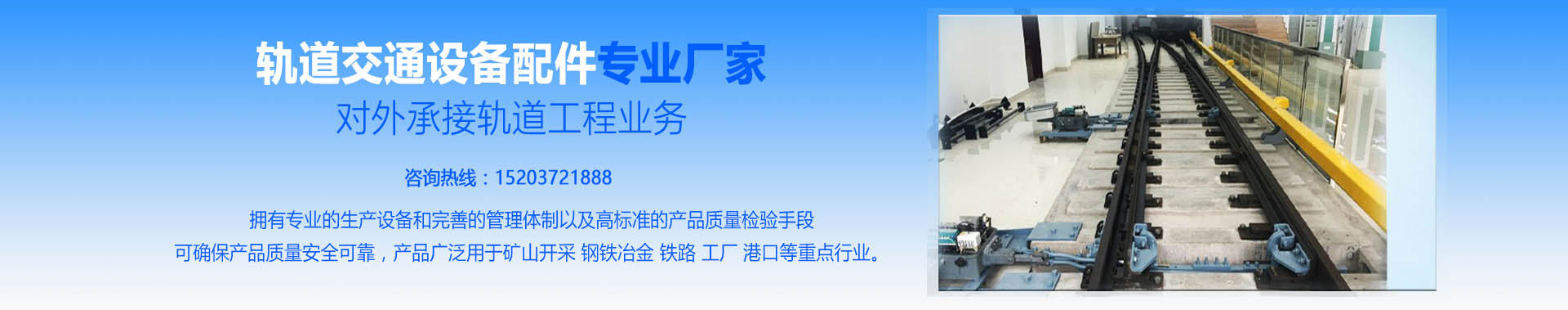 主營:電動轉轍機司控道岔輕重軌道岔礦用支護產品鐵路器材軌道工程